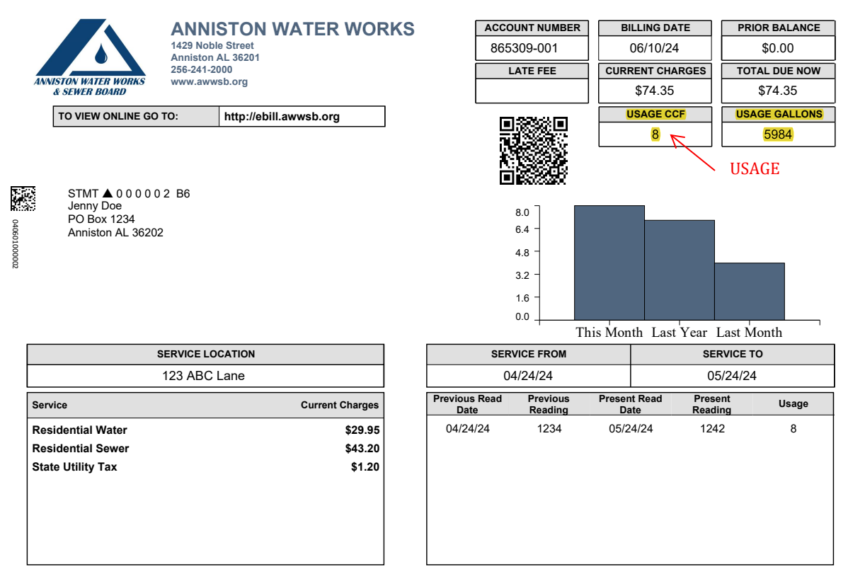 NOTE: This calculator is provided for informational purposes only for Anniston Water Works residential customers.